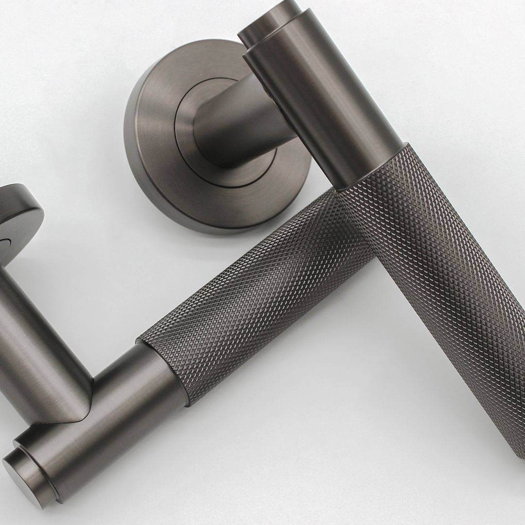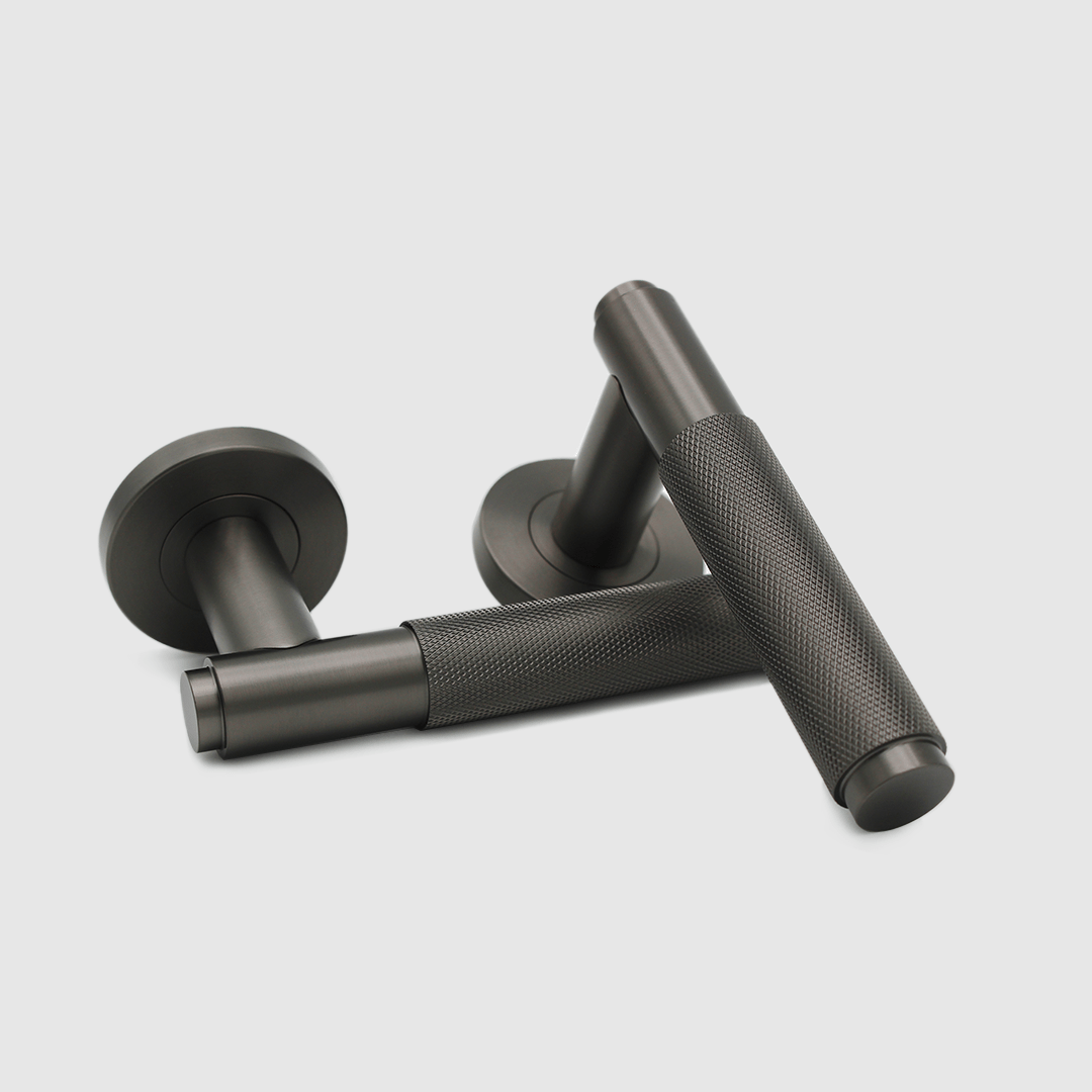 Knurled Gunmetal Door Handle – Premium Architectural Hardware by Zephra