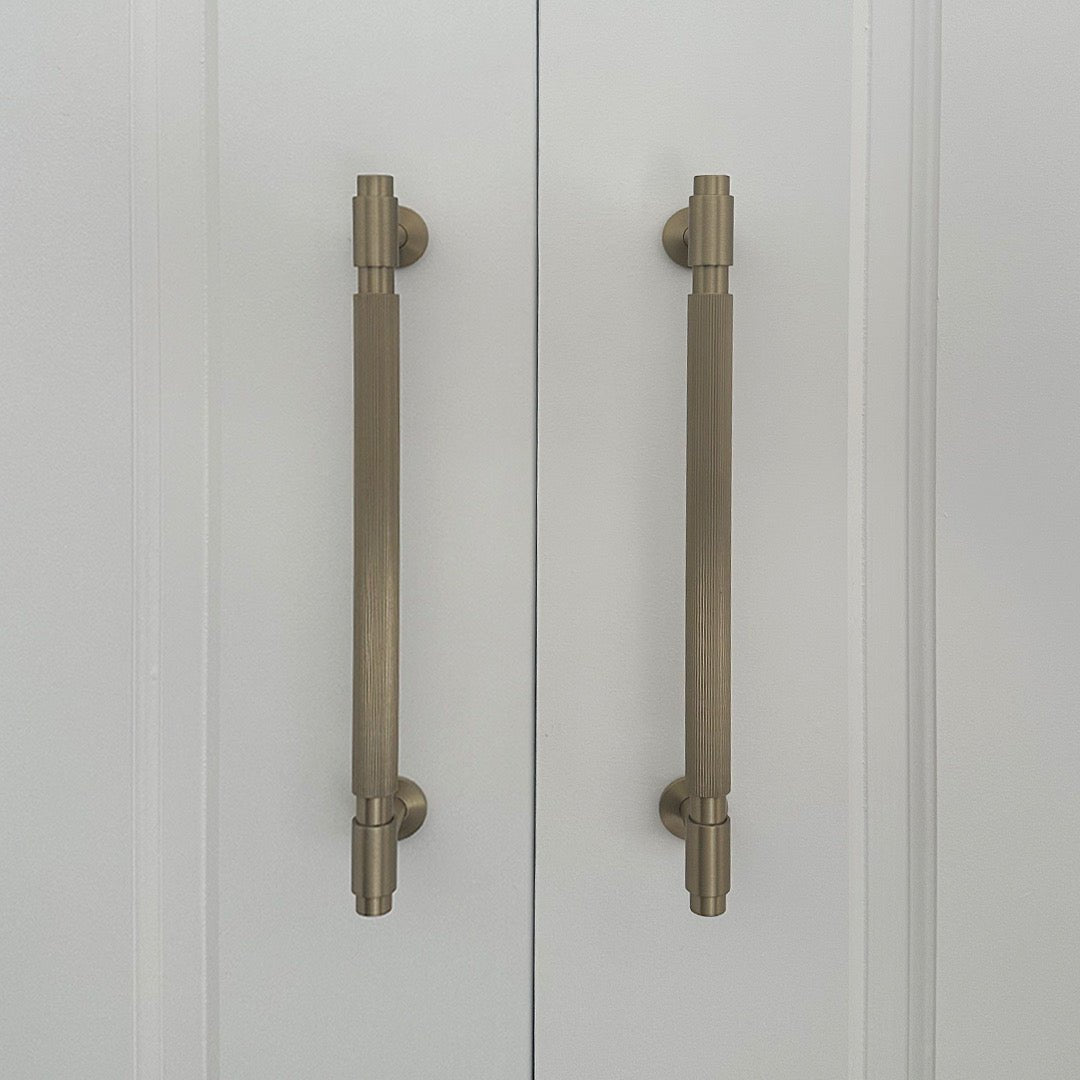 Featuring precision linear fluting across its cylindrical surface, this handle offers both tactile grip and elegant form. The 265mm length makes it an ideal fit for oversized drawers, full-height pantry doors, and wardrobe panels in high-end kitchens, bathrooms, and custom joinery.
