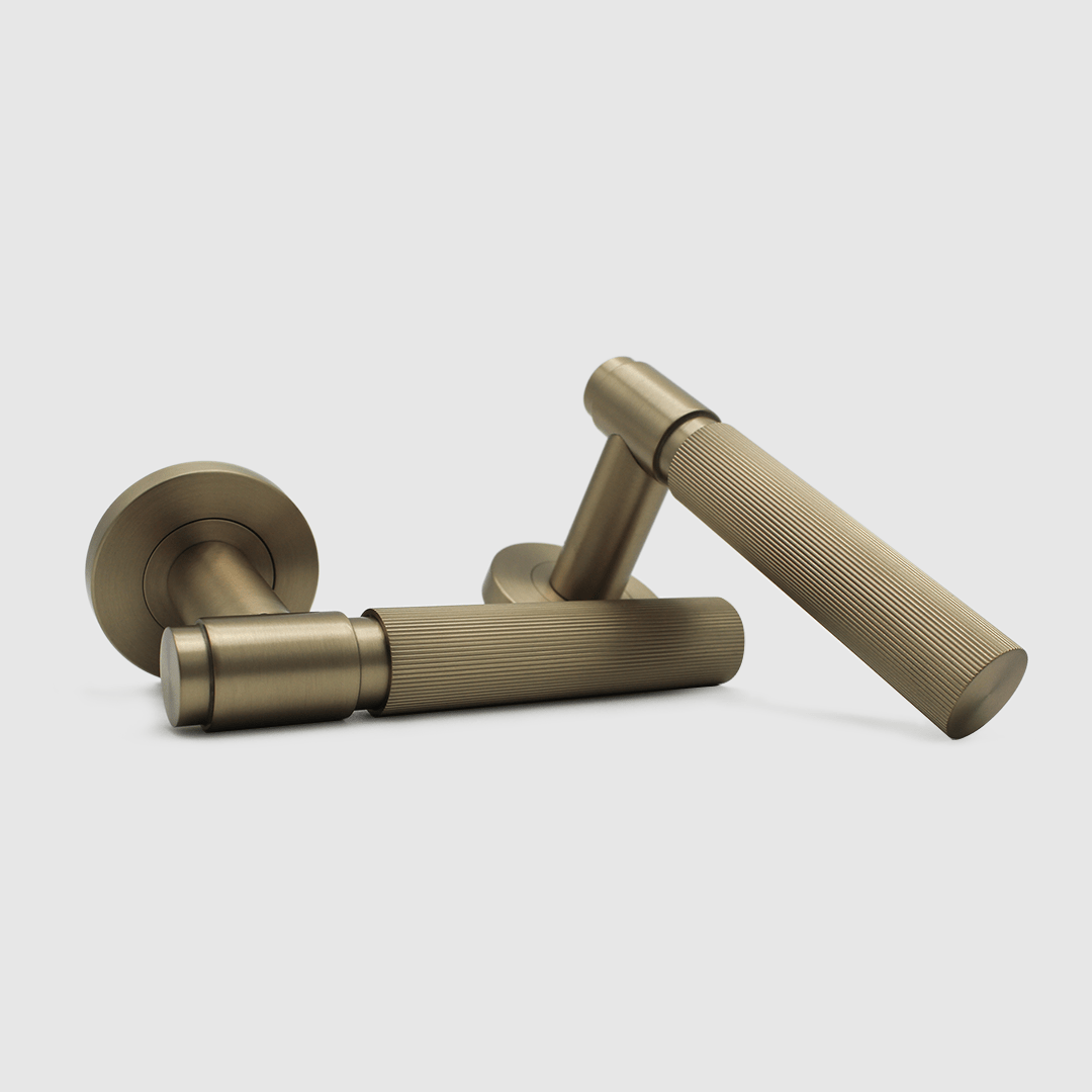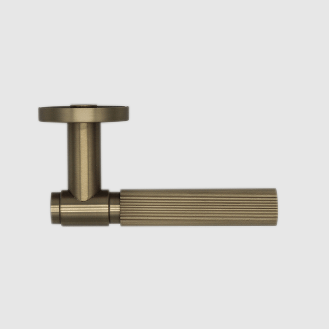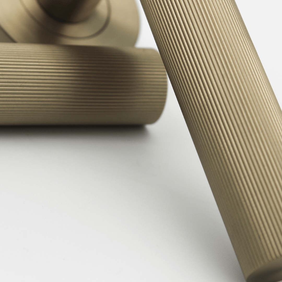 Defined by its linear texturing, the handle offers a sleek, fluted grip that balances tactile function with modern aesthetics. Its cylindrical profile and minimalist rose plate make it a perfect fit for high-end residential, boutique commercial, and architectural interiors.
