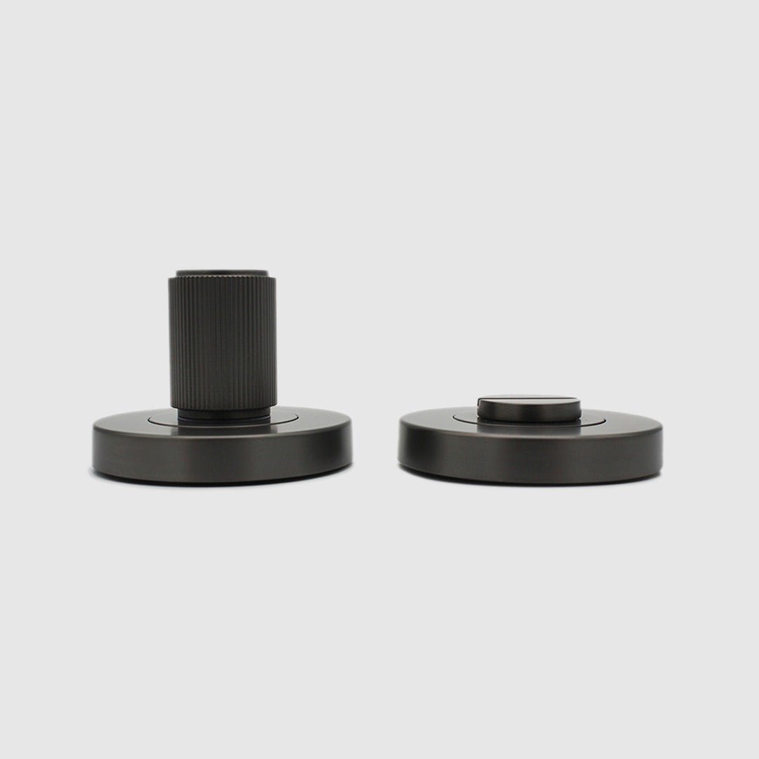 The thumb turn is accented with fine linear fluting, delivering a distinctive texture that enhances grip and visual interest. The matching release provides clean contrast and low-profile functionality.