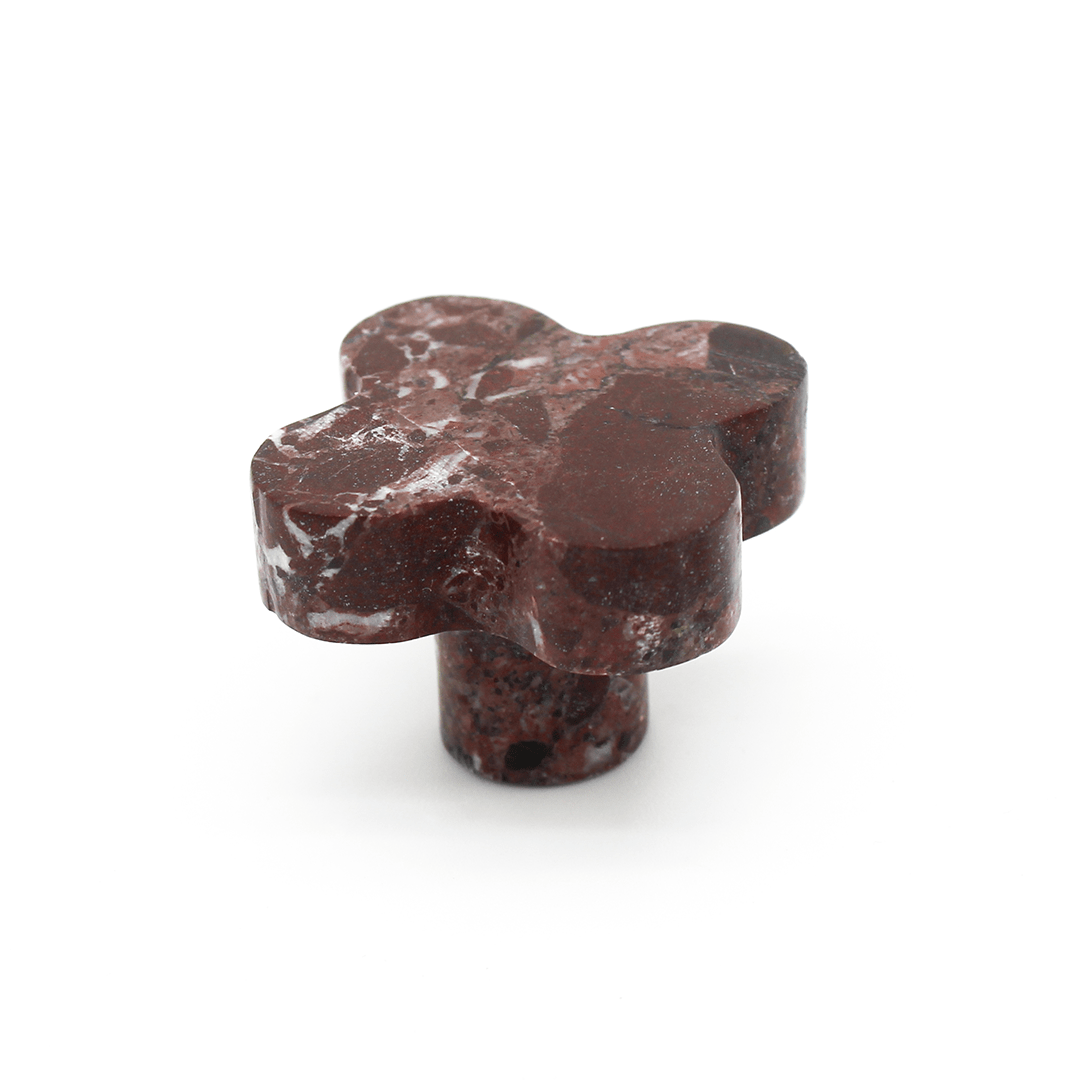 Introduce sculptural elegance and deep, rich tonality with our Clover Stone Knob in Rosso Levanto.