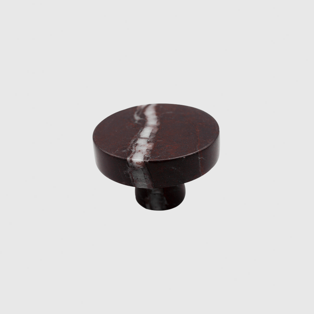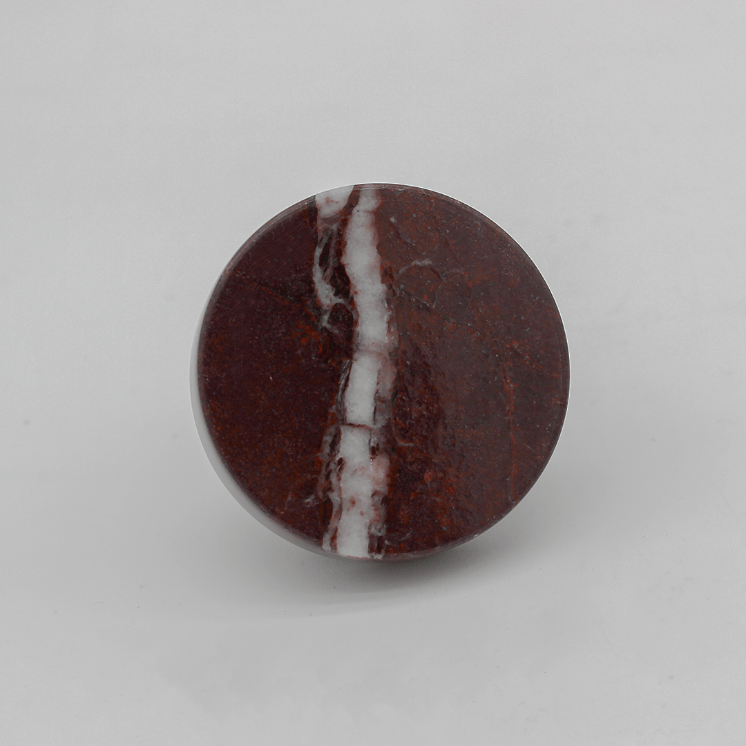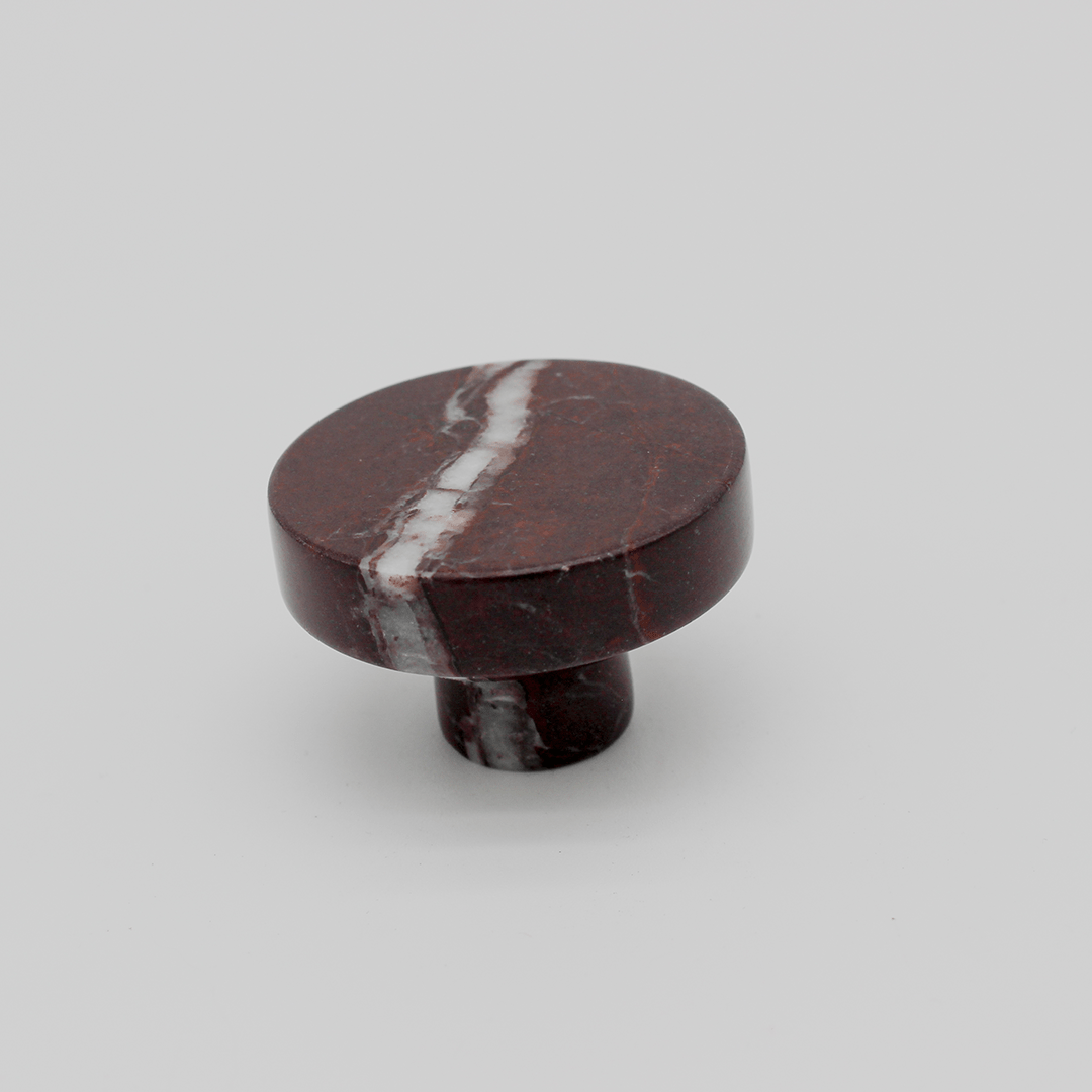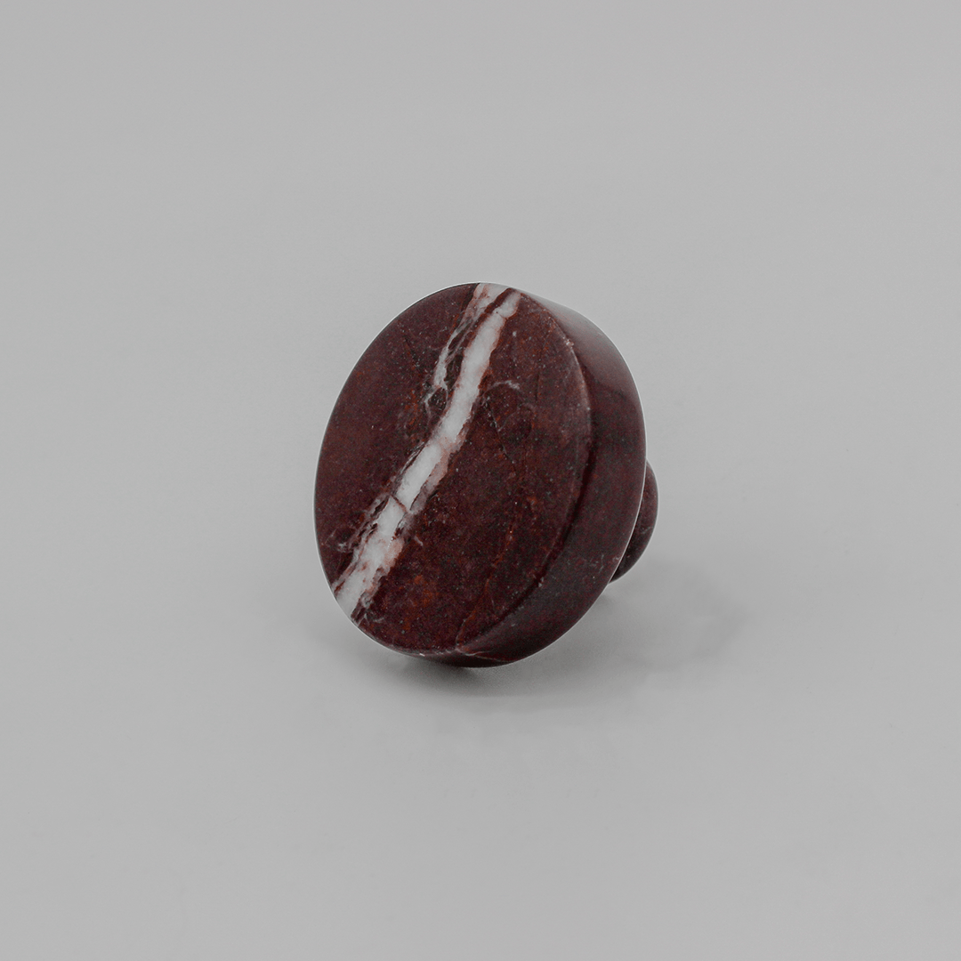 Introduce bold sophistication to your cabinetry with our Round Stone Knob in Rosso Levanto marble.