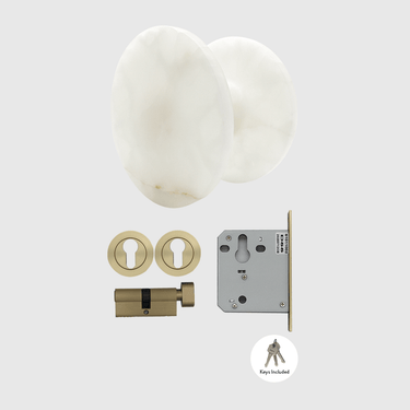 Create a light-filled and luxurious entrance with our Brushed Gold & White Onyx Entry Door Hardware Pack. This elegant pairing brings together warm gold tones and the soft translucency of white onyx.