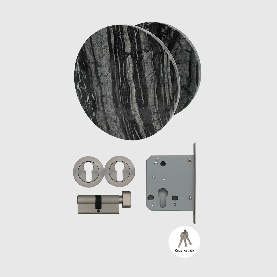 Create a contemporary and polished entrance with our Brushed Nickel & Silver Wave Marble Entry Door Hardware Pack. This pairing combines cool metallic tones with expressive marble veining.