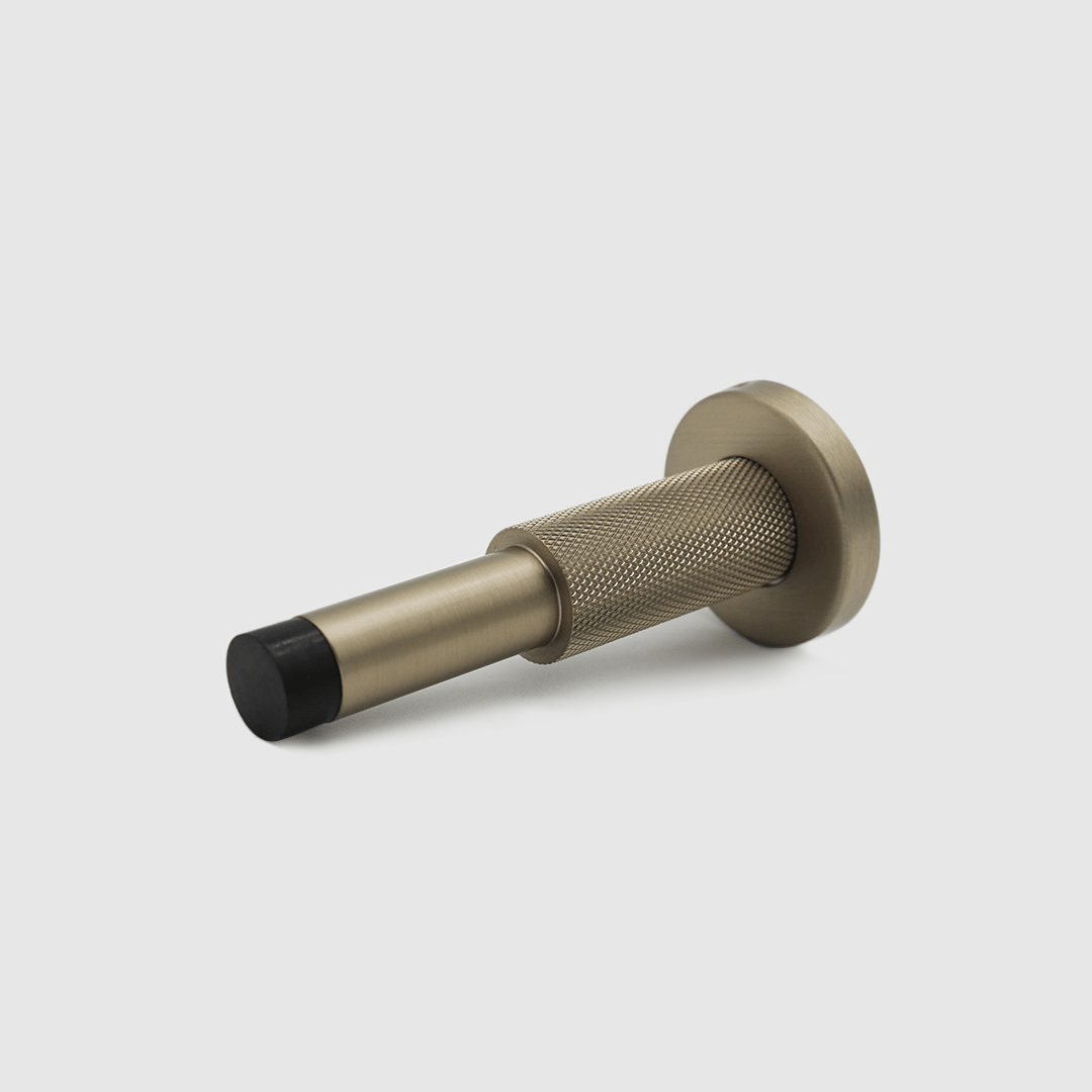 The knurled passage handle adds texture and grip, while the matching hinges and door stop complete a cohesive, high-end interior statement.
